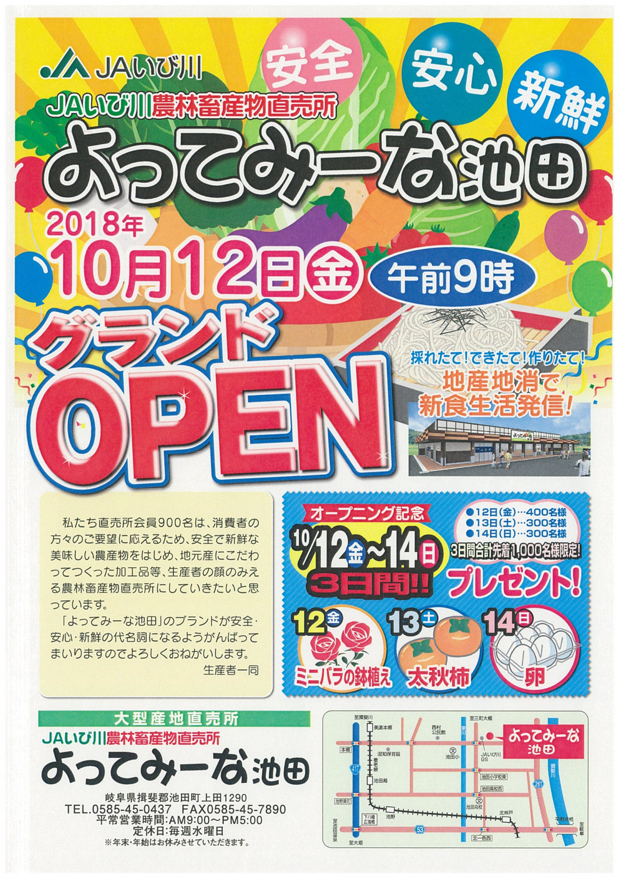 農林畜産物直売所「よってみーな池田」10月12日 グランドオープン!!