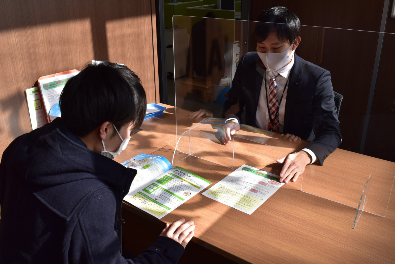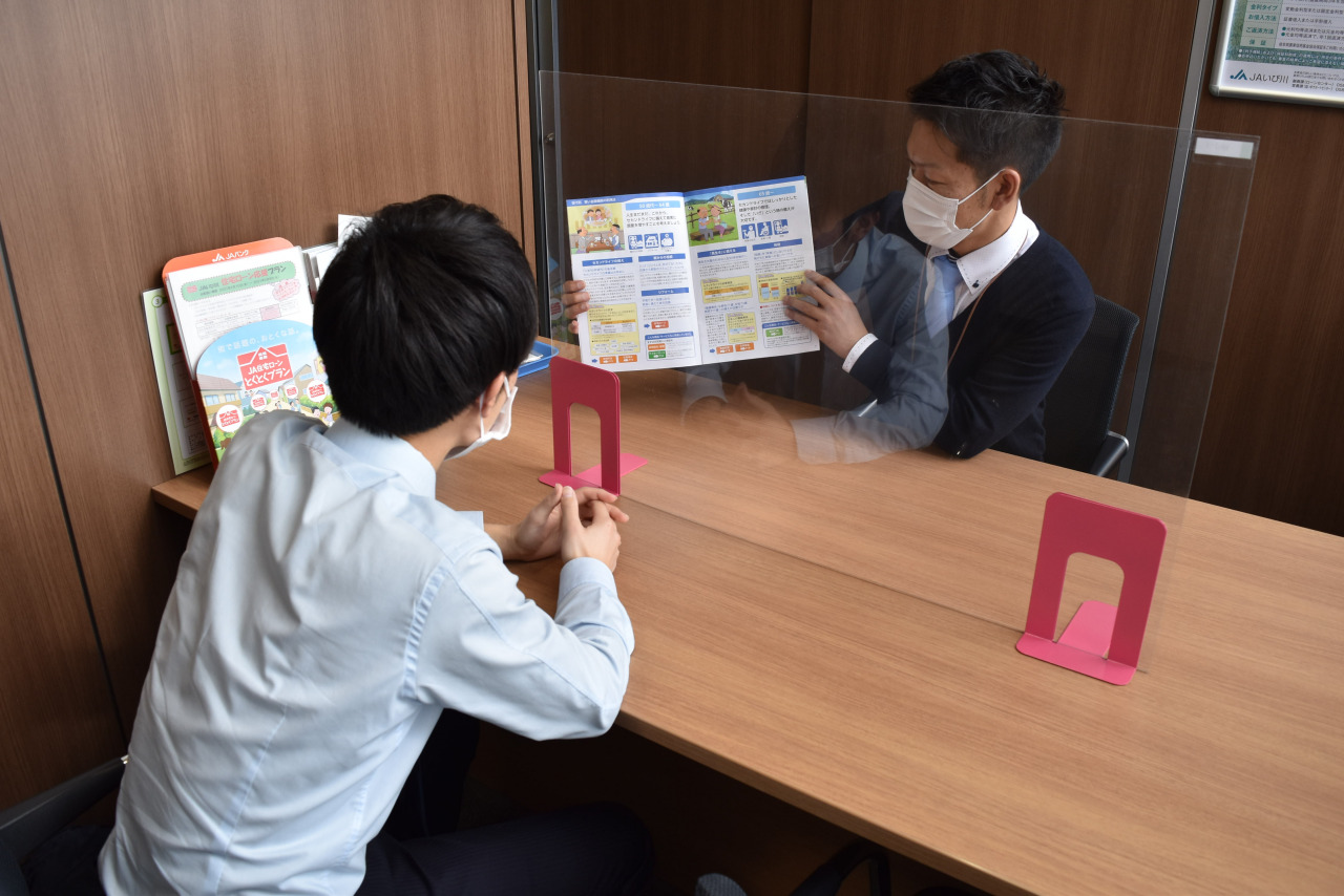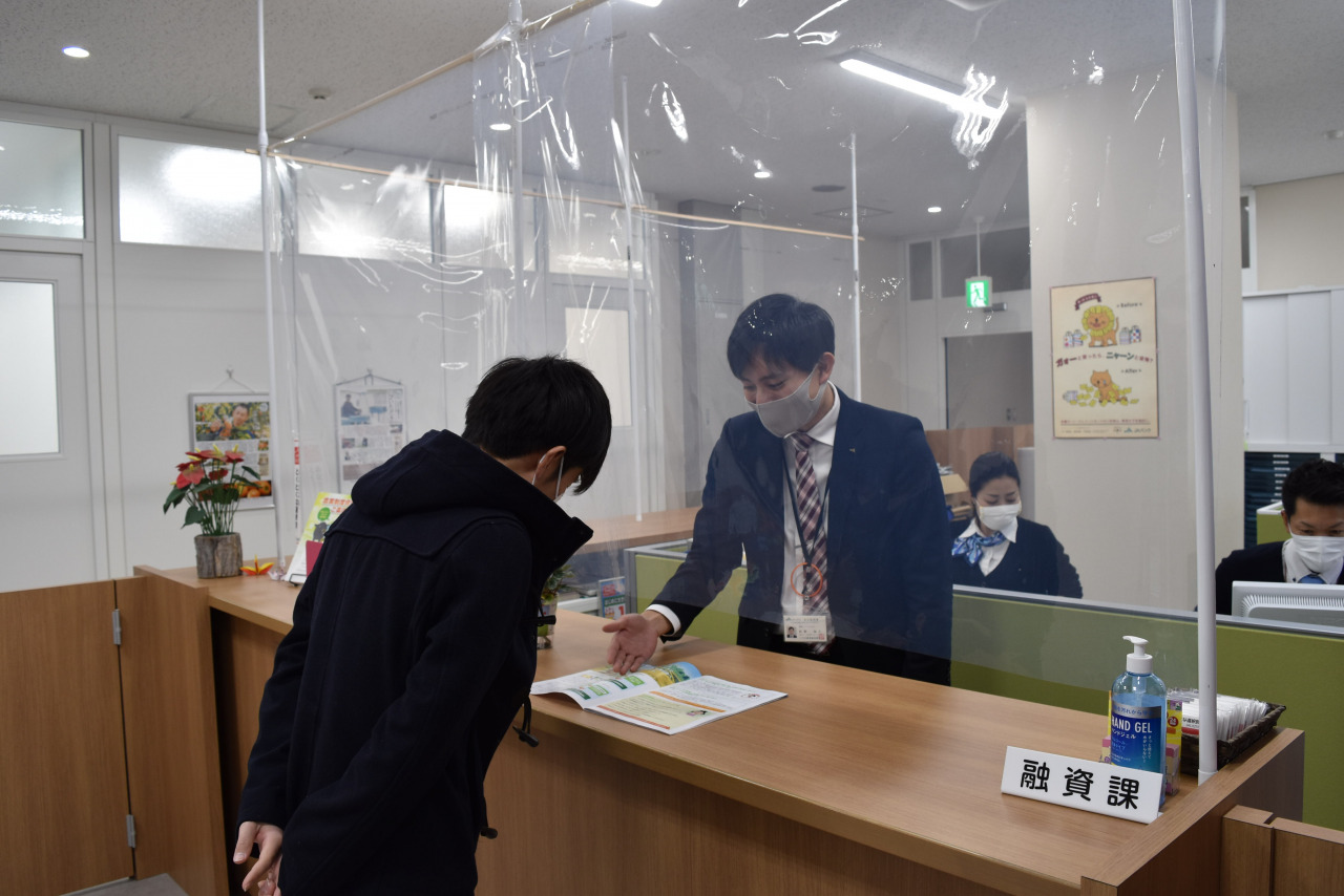 信用事業窓口等の応対時にお客様や職員への感染拡大を防ぐため、ビニールカーテンやアクリルパーテーションを設置し、飛沫感染のリスク軽減を図っています。