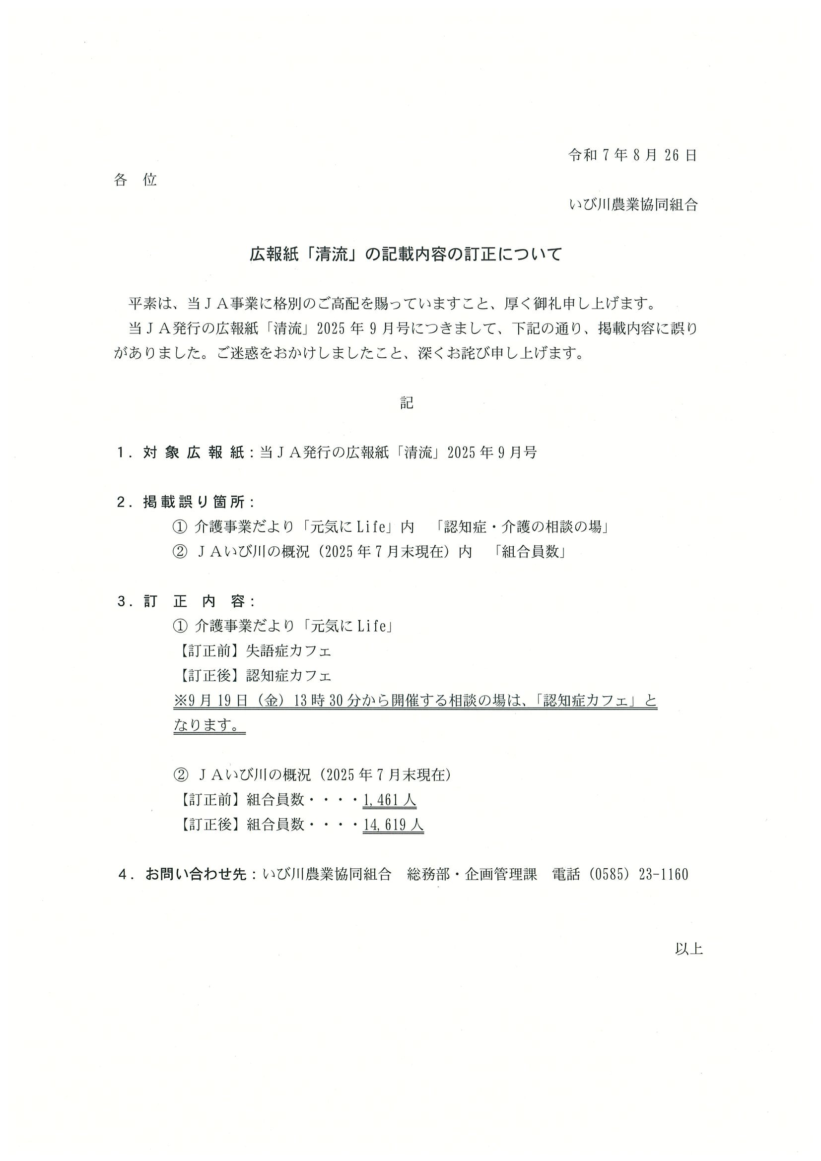 - その他 広報紙「清流」2025年9月号の掲載内容誤りに関するお詫びと訂正(JPEG:196.27KB)