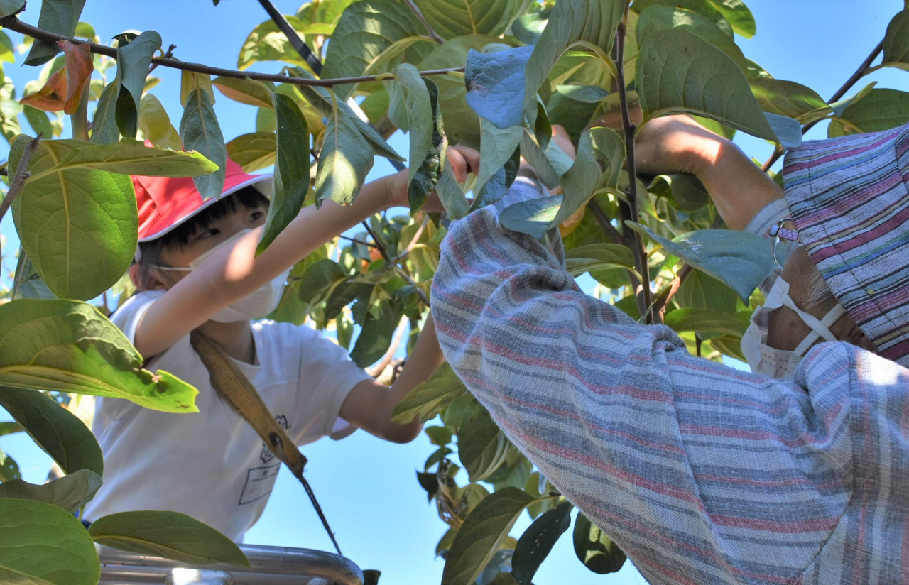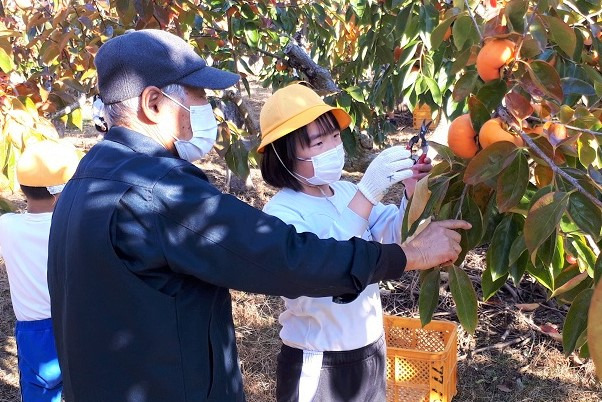 大野町内の小学校で柿の収穫体験を実施しました