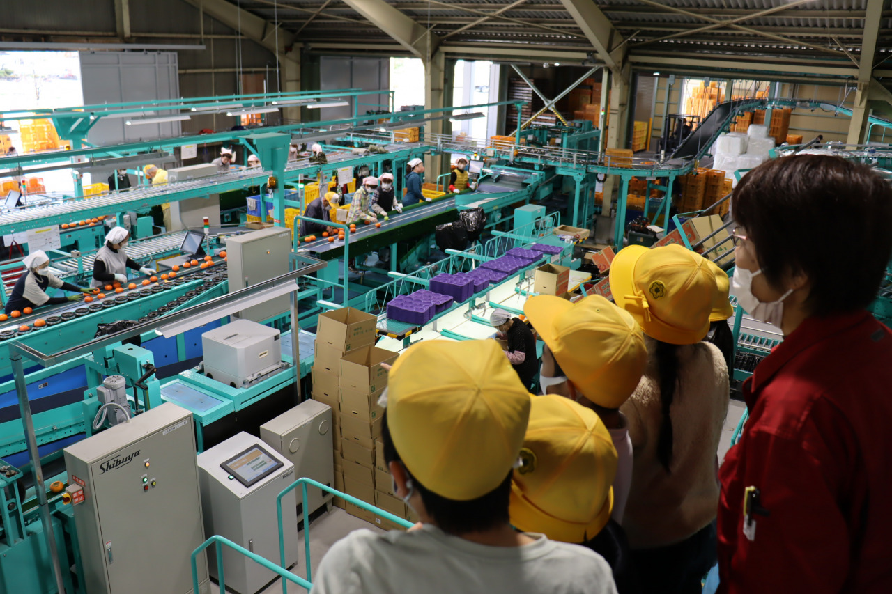 また、今年リニューアルした大野町果実共選場の見学会も開き、収穫された柿がどのように市場に出荷されるかを学んでいただきました。