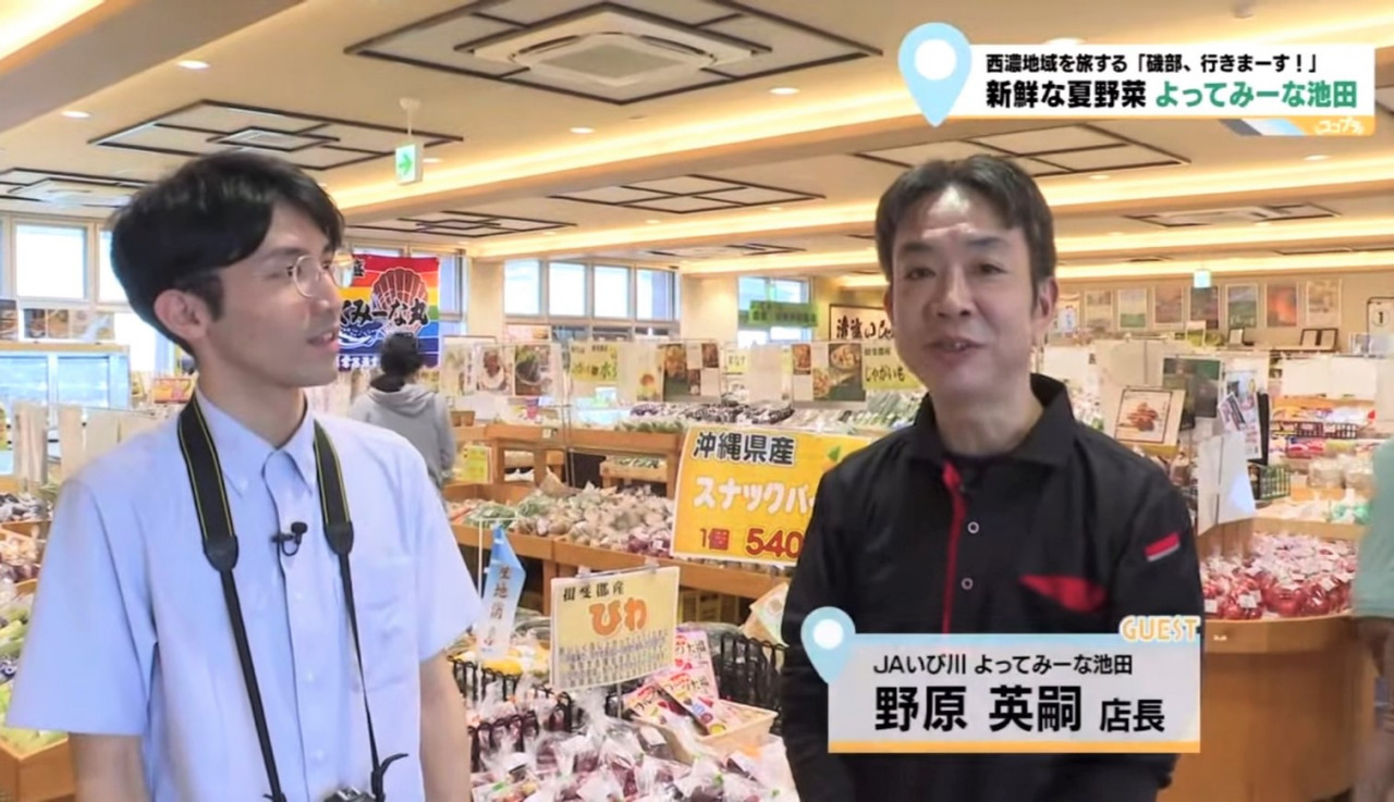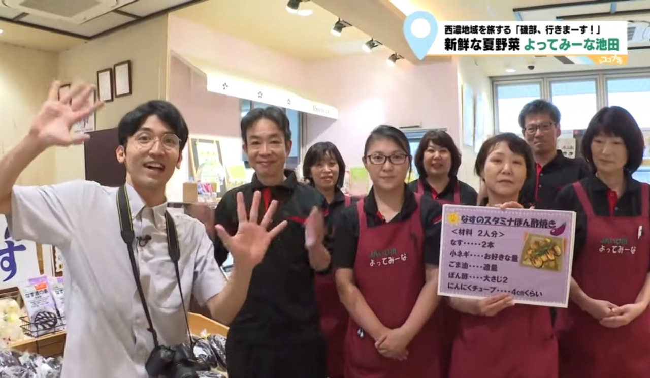 よってみーな池田が、大垣ケーブルテレビの「ココプラ!」という番組内で特集されました!野原英嗣店長と食育ソムリエが出演し、店舗の特徴や今が旬のナスを使ったレシピを紹介しました。
