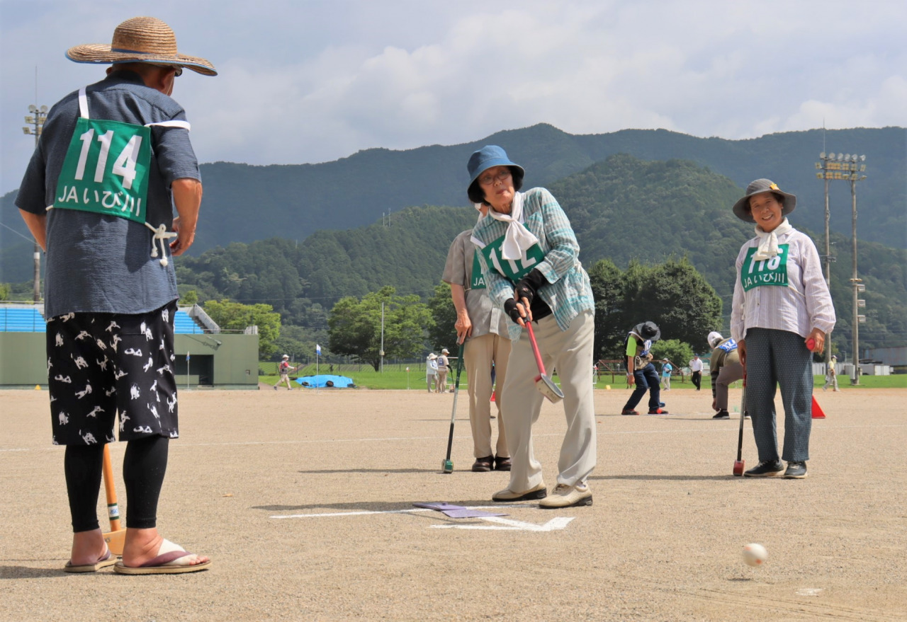 当JA年金受給者友の会は、7月18日にシニアゴルフコンペ、7月下旬にグラウンドゴルフ地区大会を開催しました。皆さんで協力して楽しみながらゲームを進め、元気いっぱいクラブを振りました。