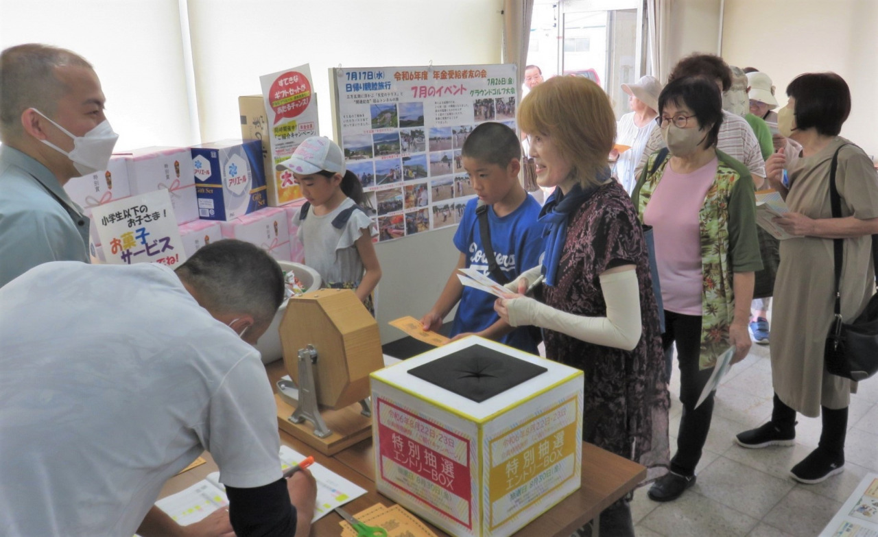 会員さま感謝祭を開催しました! 2024年08月22日(木) イベント 組合員への感謝を込め、大野支店と揖東支店で感謝祭を開催しました。年金受給者や青年部員、女性部員を対象に、素敵な賞品が当たる抽選会を行ったほか、かき氷やポップコーンのプレゼントなど、皆さまとの交流を楽しみました。【大野支店】【揖東支店】